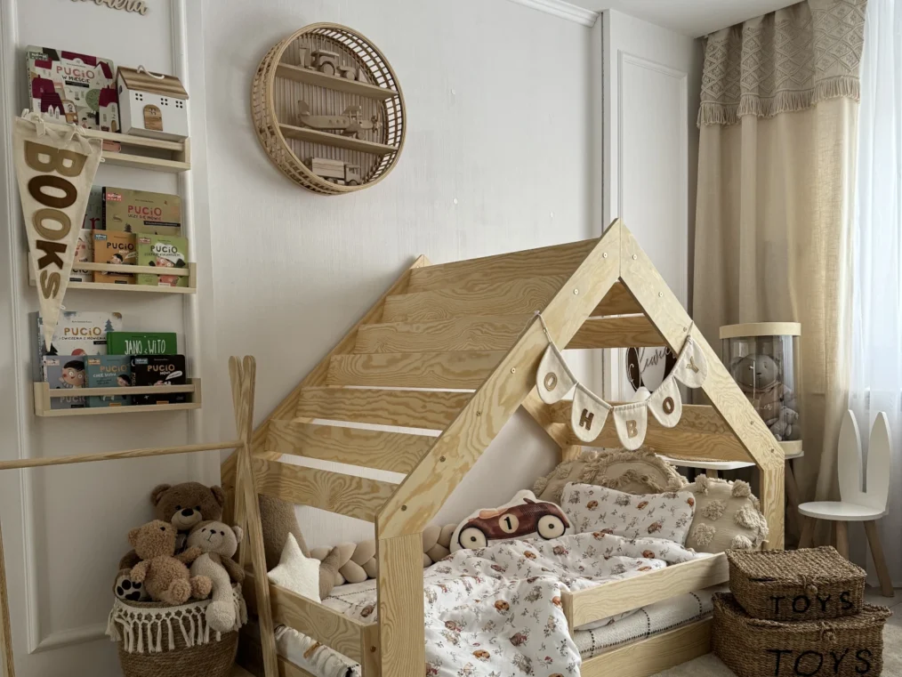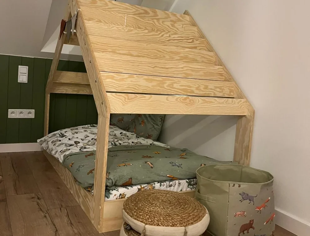 Sa structure en forme de maison avec une fenêtre intégrée au « toit » apporte charme et originalité, faisant du lit un élément unique de la chambre d’enfant. Il peut facilement être embelli avec des guirlandes lumineuses ou autres décorations pour créer une ambiance chaleureuse.