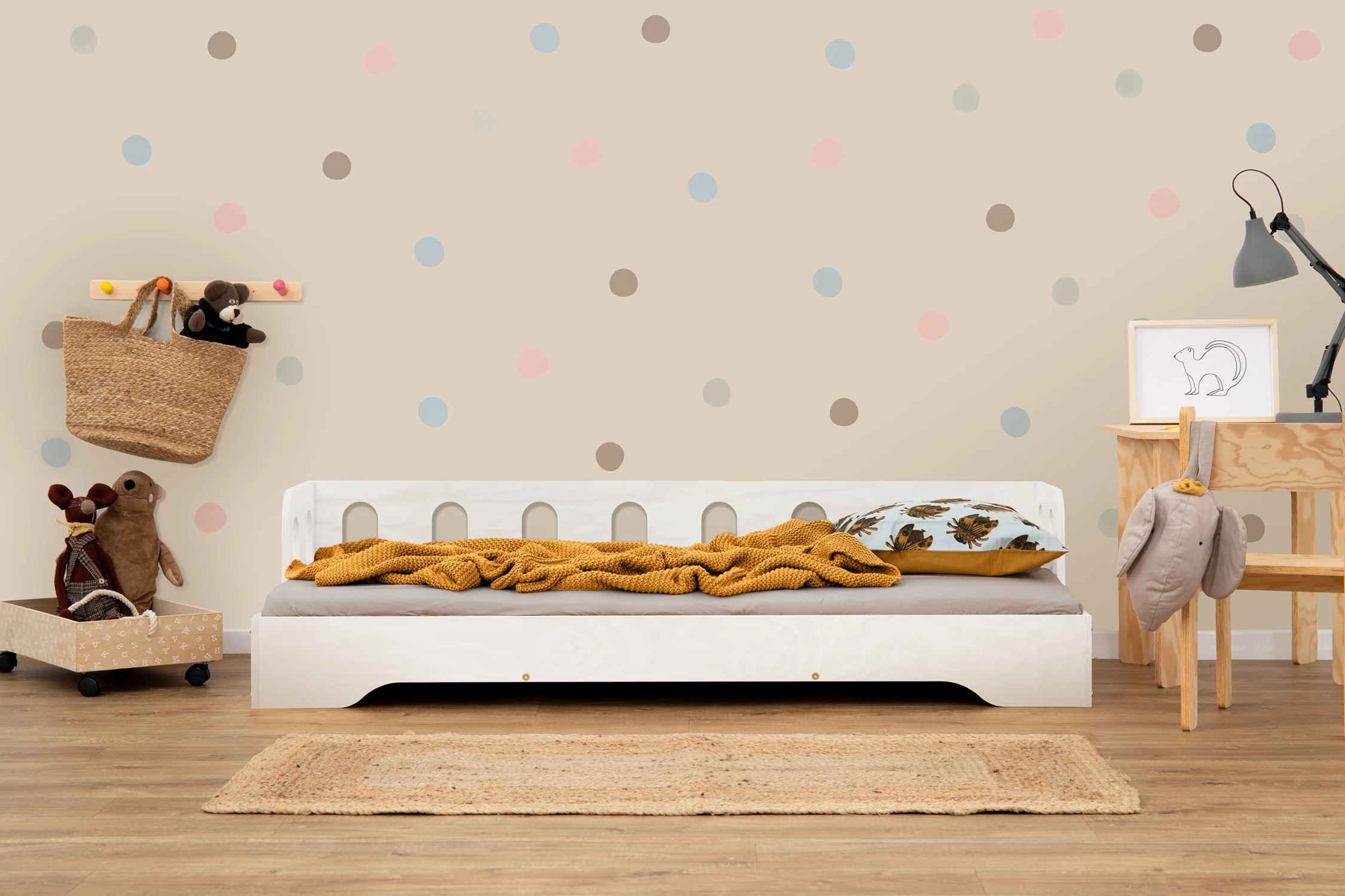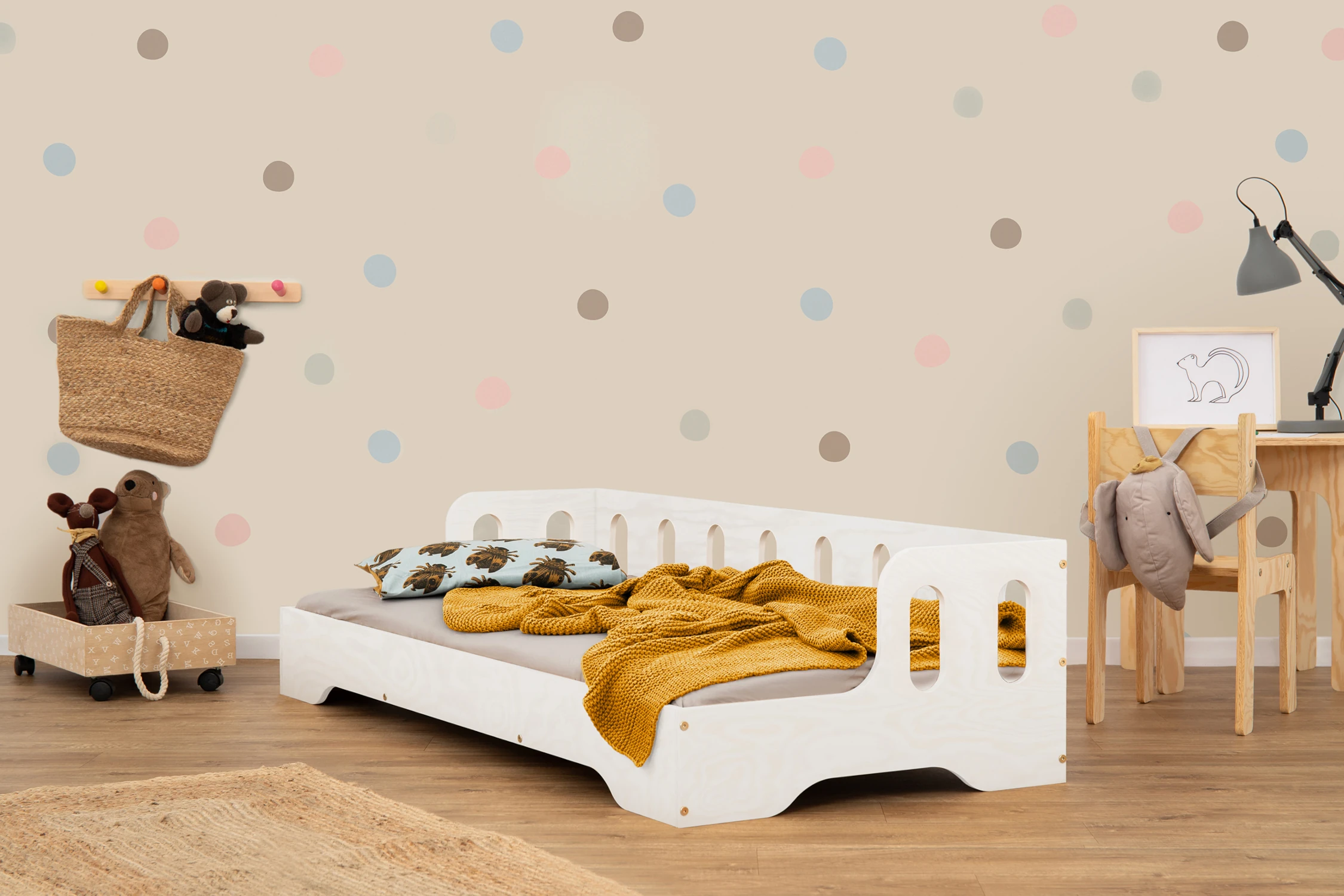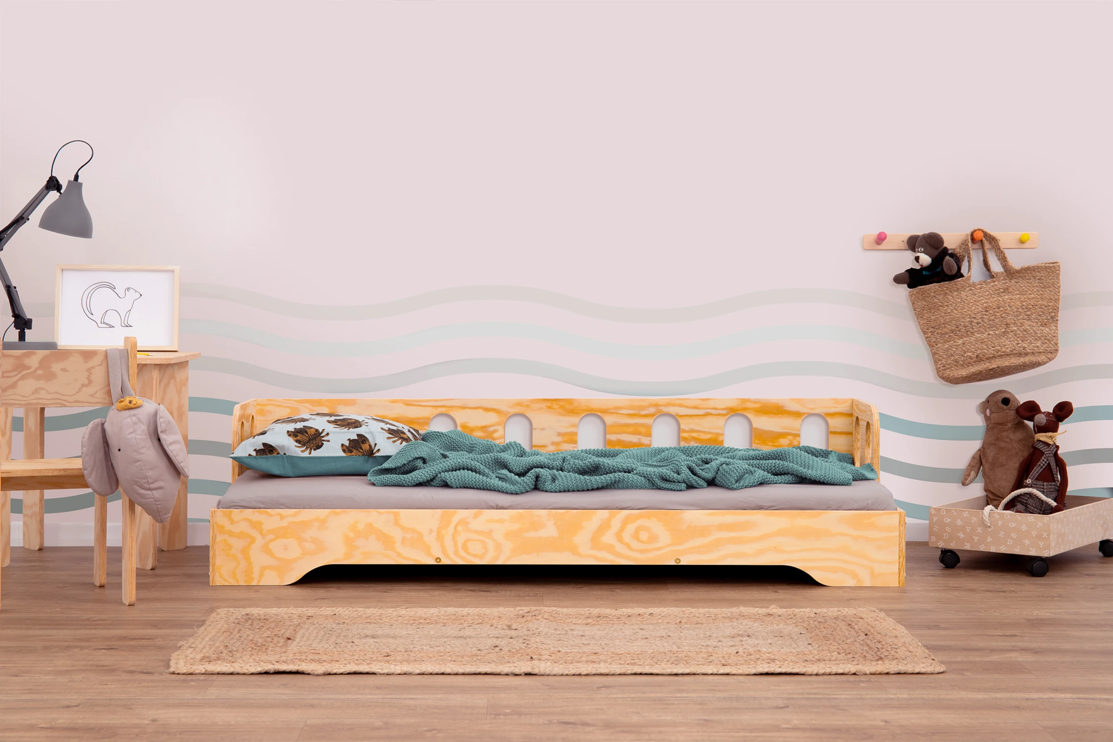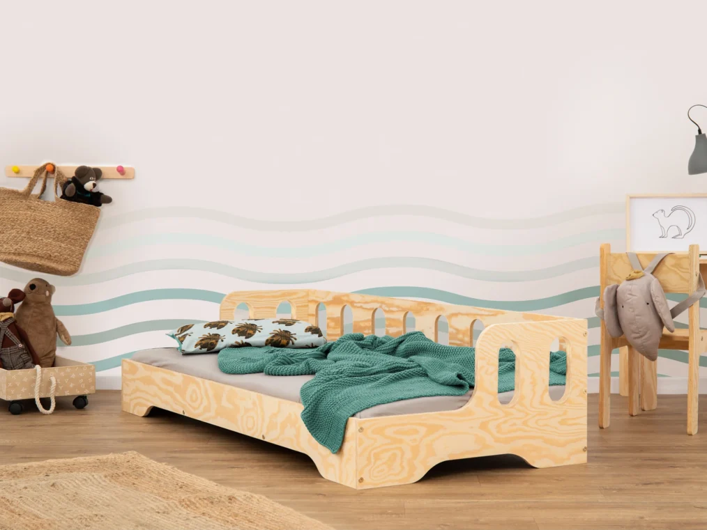 Sa conception ouverte et basse permet un accès facile, favorisant ainsi le développement de l’autonomie de l’enfant, tandis qu’une barrière avec des découpes longitudinales sur le long côté du lit offre un appui confortable. Fabriqué en contreplaqué de pin de haute qualité, ce lit, disponible en 11 couleurs et 20 tailles, s’intègre parfaitement dans tout intérieur.